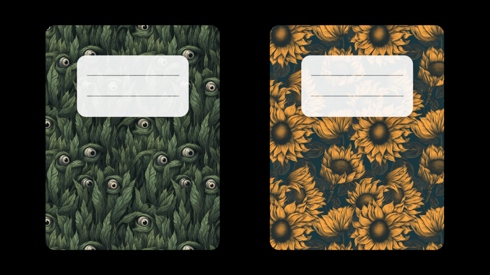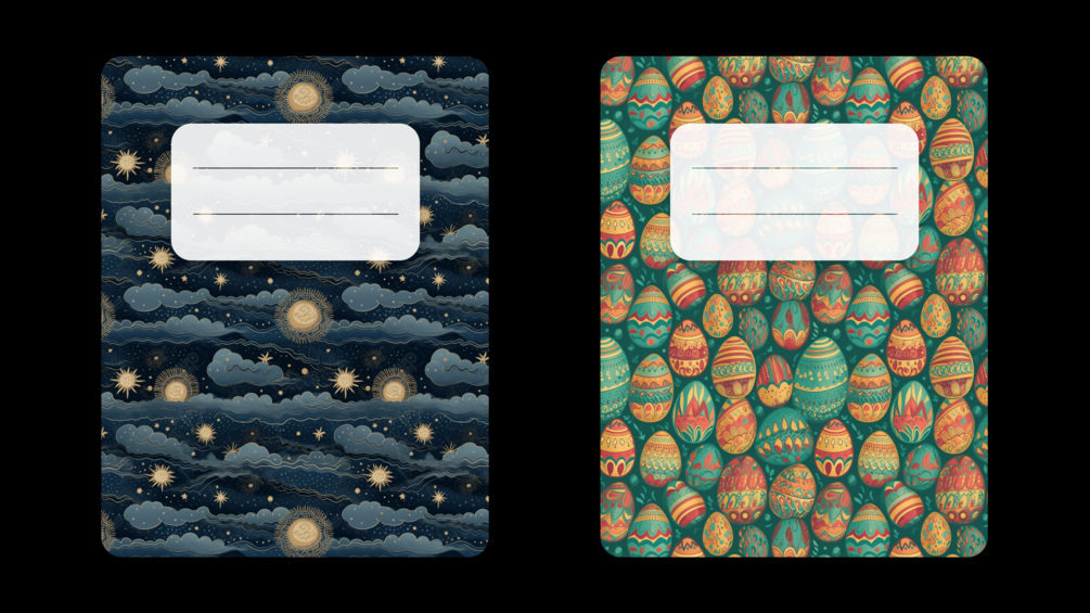 14 digital covers come in a variety of designs, from sleek and minimalistic to bold and colorful, so you can find the perfect one to suit your style. And because they're digital, you can easily switch them out whenever you want to give your notebook a fresh new look ๐๏ธ